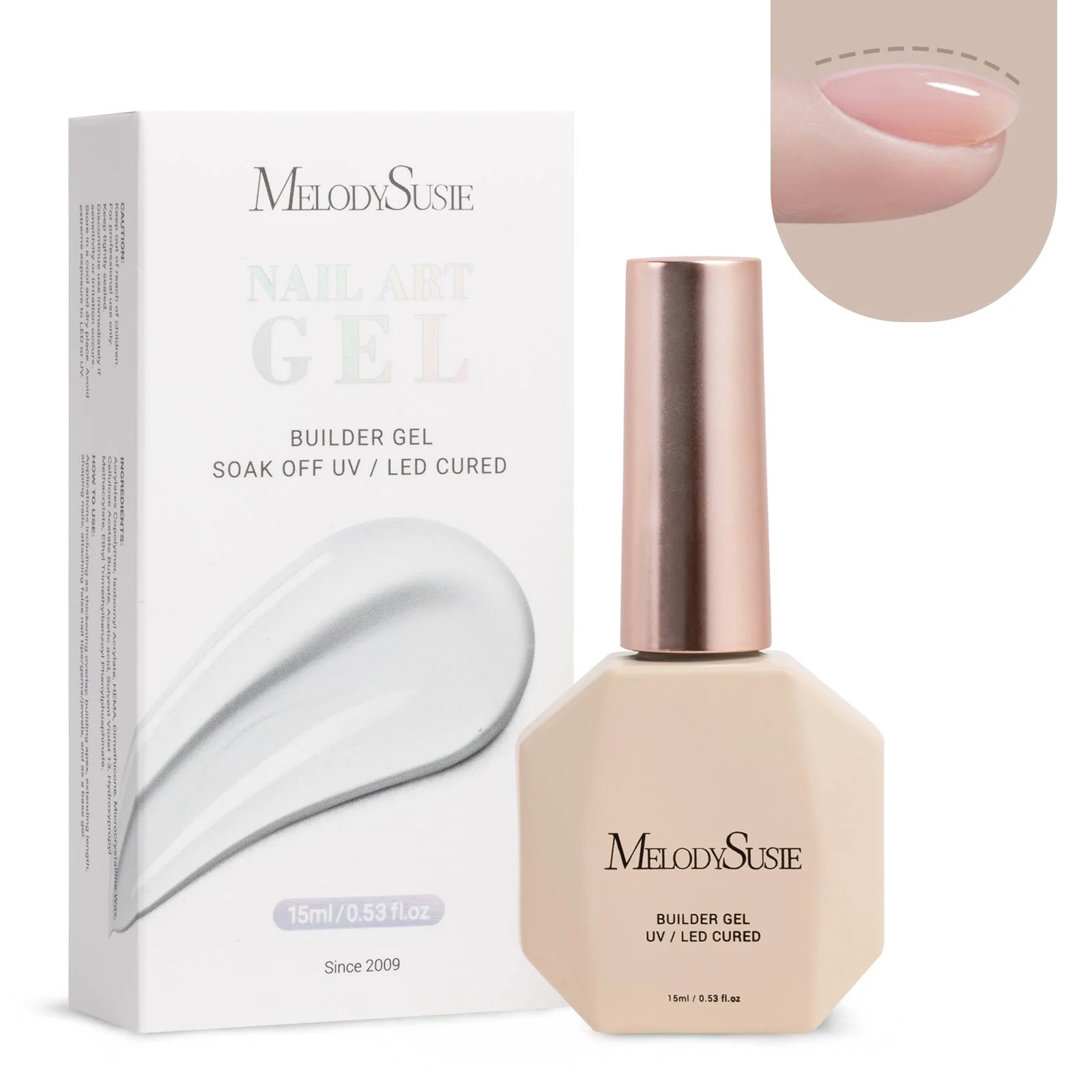 Suitable for Christmas gifts and stocking. MelodySusie’s professional 15ml builder gel is great for professional nail artists. Easy to apply and achieve perfect nail designs. It’s effective in solving most nail problems.